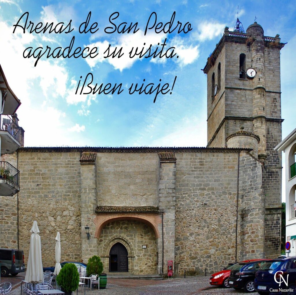 Nos encontramos en el centro de Arenas, junto al ayuntamiento. Aquí es donde se decidió erigir la iglesia de Ntra. Sra. De la Asunción, con su exterior marcado por la simplicidad, si no fuera por la esbelta torre renacentista. La construcción del templo en su estructura gótica data de principios del S. XV, mandada construir por el Duque del Infantado, D. Diego Hurtado de Mendoza (nieto de doña Juana de Pimentel y D. Álvaro de Luna), es un templo orientado, es decir, su muro principal, donde se cobija el Sagrario, está mirando a Jerusalén. La decoración de las bolas nos habla del característico gótico abulense, así como su magnífico púlpito de granito. La iglesia está bajo la advocación de Nuestra Señora de la Asunción.